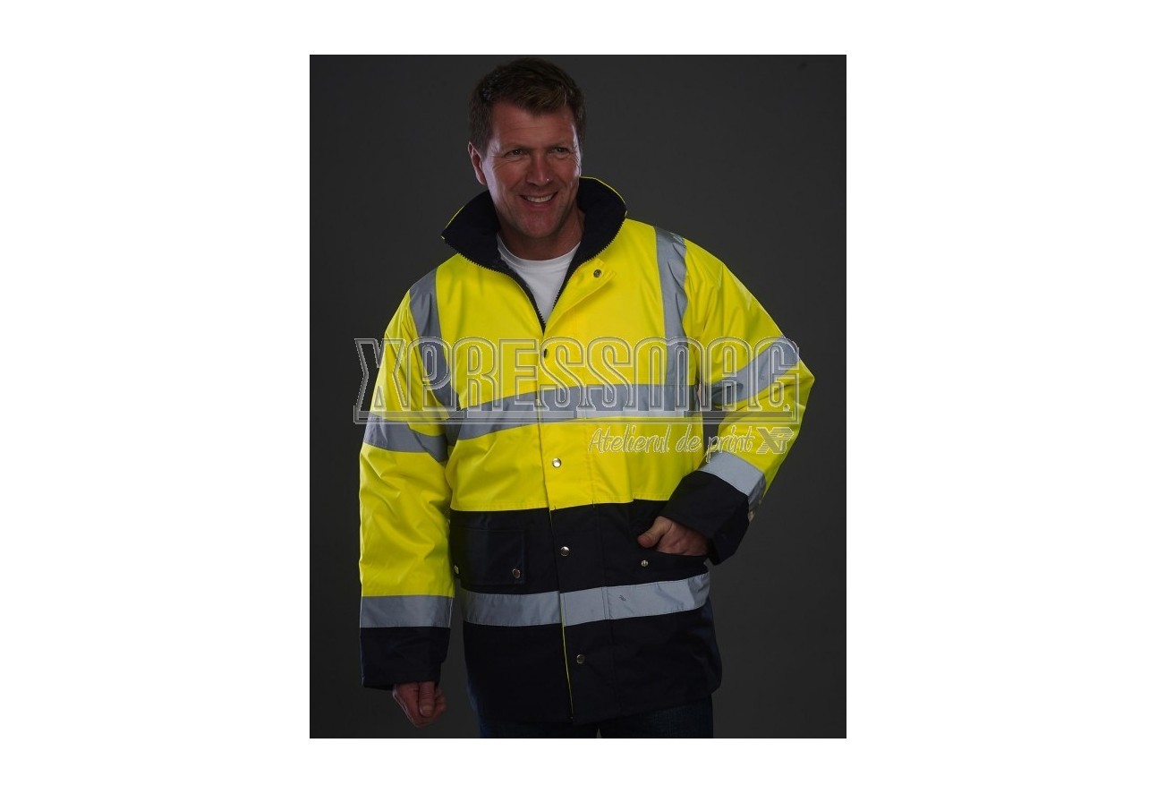 * jacheta de siguranță cu benzi reflectorizante 3M – verticale și orizontale, pe partea de față și cea de spate