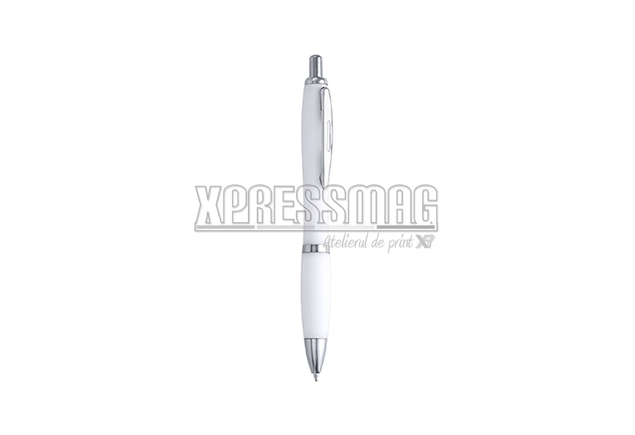Pix din plastic cu clip metalic si mina albastra.Personalizare prin tampografie sau print UV.