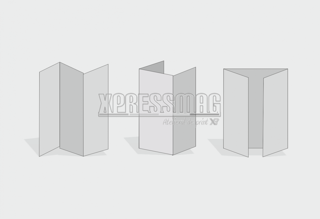 Format A4 desfasurat, impaturit in 3, hartie DCM 115 gr.mp, print fata/verso.